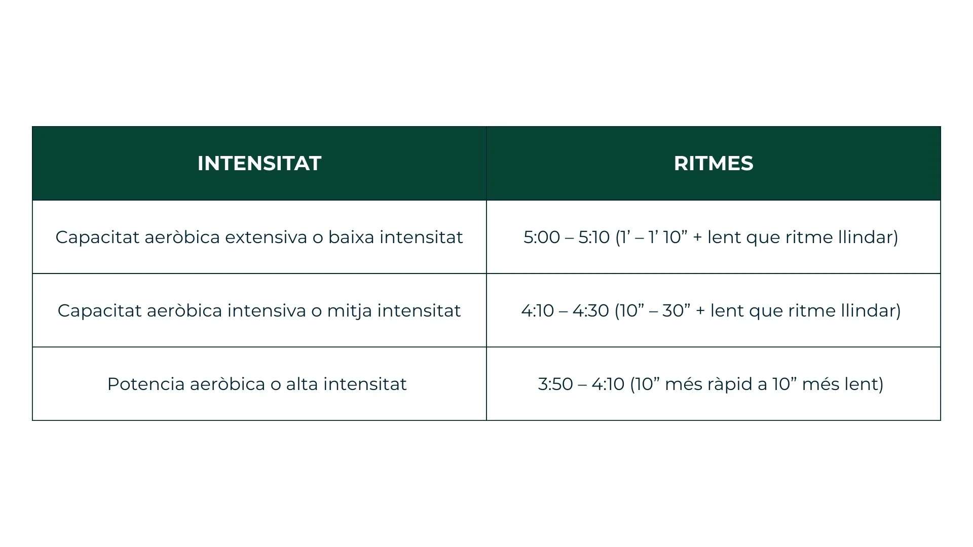 Corredors: Ritmes iguals o lleugerament superiors a la marca personal de 10 km.